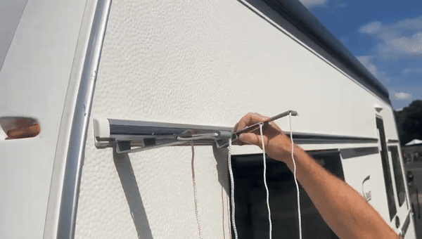 Schieben Sie die Aluminiumstützen in die Schienen Ihres Wohnwagens.